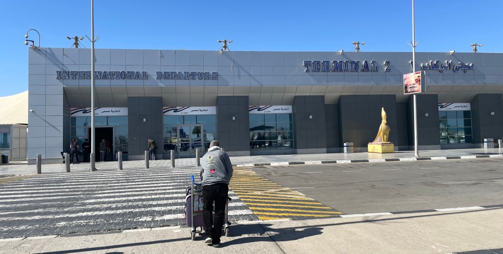 Erstmaliges Durchleuchten von Gepäck und menschlichen Körpern. Auf der anderen Seite der Durchleuchtungsanlage nimmt ein weiterer ‚Kuli‘ unsere Koffer und führt uns zu den Abfertigungsschaltern, die wir auch ohne Hilfe sofort gefunden hätten. Er verdient sich sich so 3 Euro, happig!