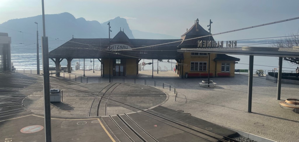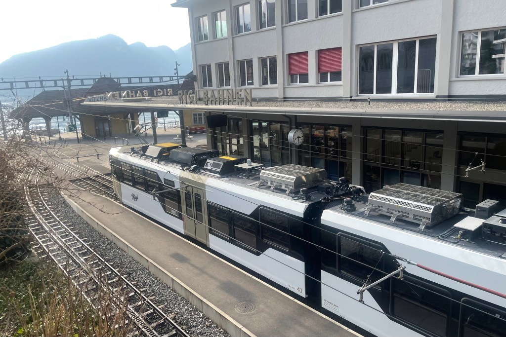 Wir haben uns aber entschlossen, mit dem nächsten Schiff, dh um 15.49 direkt nach Luzern zu reisen. Vorher haben wir noch genügend Zeit, um auf dem Bahnhofplatz herum zu lungern, sowie die Infratruktur, das Rollmaterial der Rigi Bahnen und anderes mehr anzuschauen.