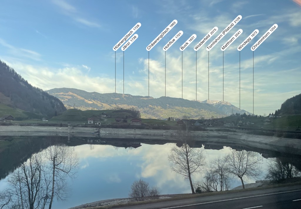 Welches ist der Pilatus und welches ist das Tomlishorn, die Windegg, das Matthorn. Auflösung der Fotorätsel am Ende des Tagesberichts.
