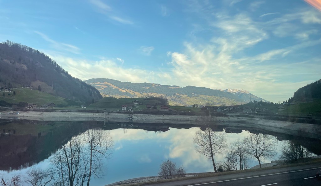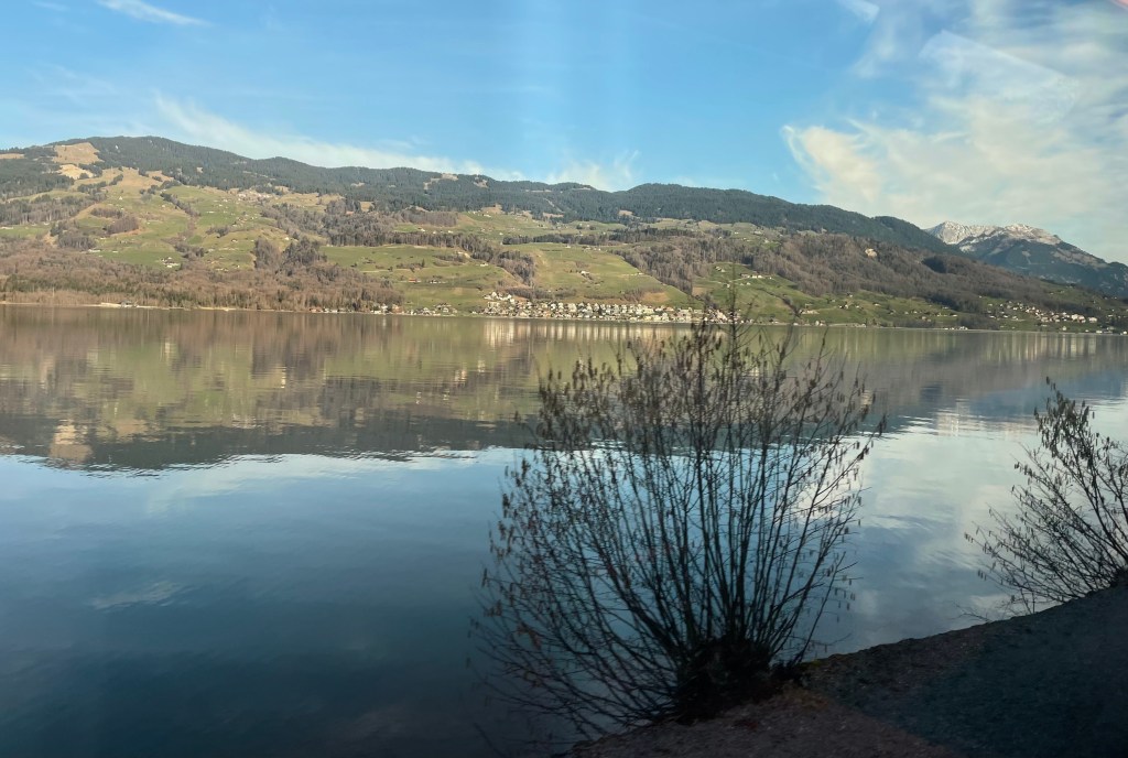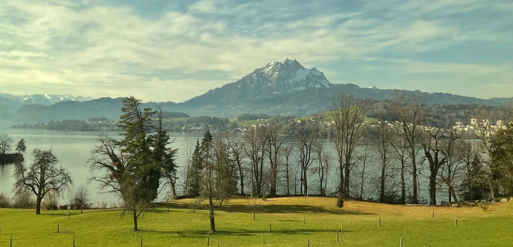 Der Ausblick aus dem fahrenden Zug oberhalb der Wartenfluh auf die Luzernerbucht des Vierwaldstättersees, kurz bevor der Zug die Richtung abrupt Richtung Meggen und Küssnachtersee ändert, gefällt mir immer sehr. Schreckhorn und Wetterhorn sind noch knapp zu sehen. Esel, Tomlishorn und Mittagsgüpfi heissen die markanten Gipfel der Pilatusgruppe, kennst du die Berggipfel? Auflösung am Schluss des heutigen Berichts.
