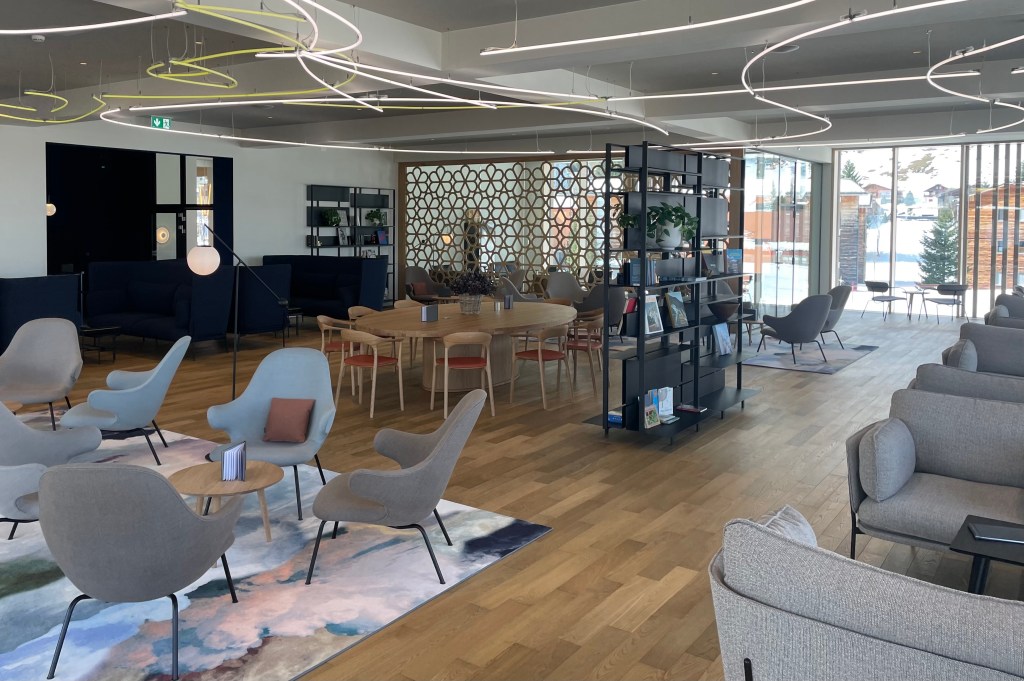 Wir steuern die gerade neben der Station liegende Stoos-Lodge, ein vor 2-3 Monaten eröffnetes ****Hotel an. Auf den ersten Blick sieht das Haus von aussen nicht gerade anmächelig (anlockend) aus. Das Restaurant ist ein Mix aus bedientem und Selfservice Geschäft. Immerhin bedient uns ein fröhlicher junger Mann, der uns bereitwillig alles erklärt.