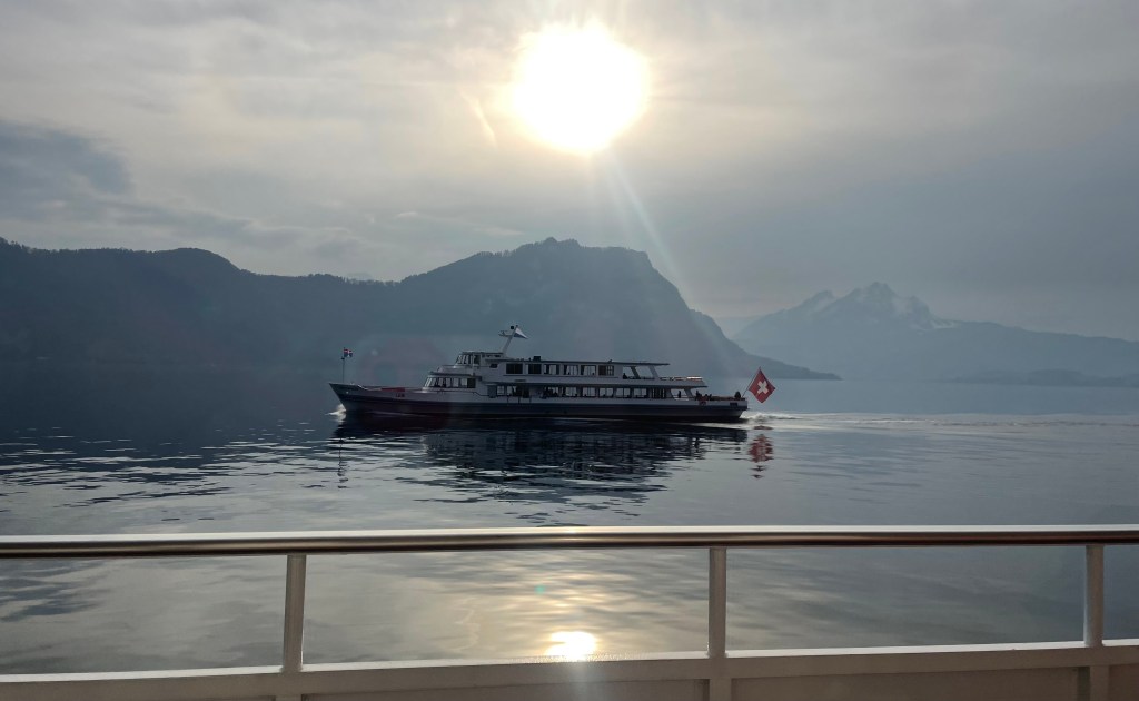 Diese Schifffahrt ist einmal mehr ein wahrer Genuss. Die winterliche Sicht auf die umliegenden Berge und die Schiffe gefallen uns.
