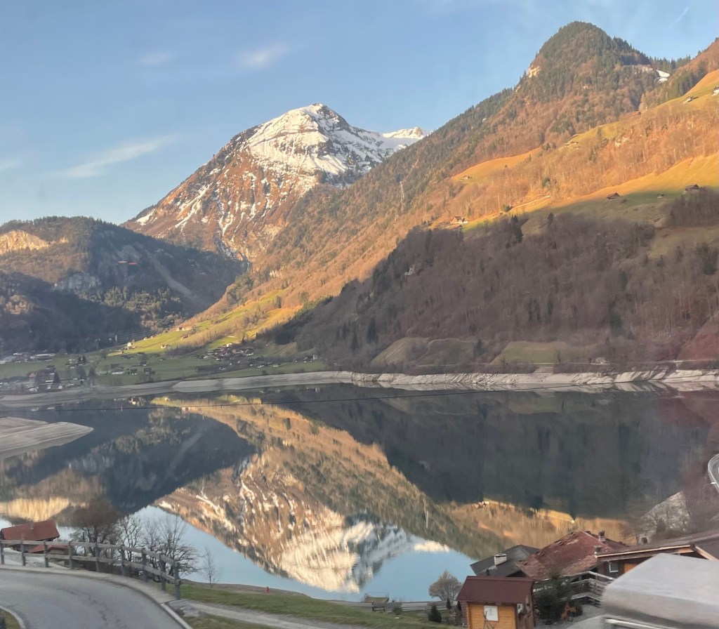 Der Lungernsee ist noch nicht ganz voll. Der See liegt trotzdem ganz ruhig da, so dass sich alle Berge darin spiegeln können.