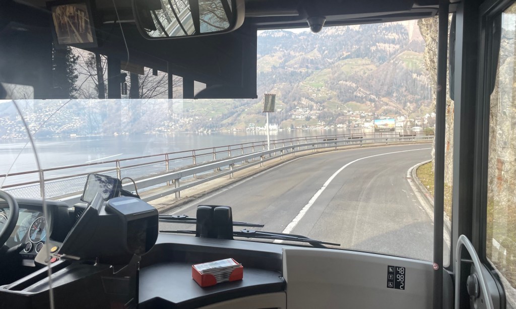 Um 14:40 Uhr erreichen wir in einem Bus der AGs Schwyz Zentrum, wo wir auf einen anderen Bus umsteigen, der uns über Brunnen und Gersau