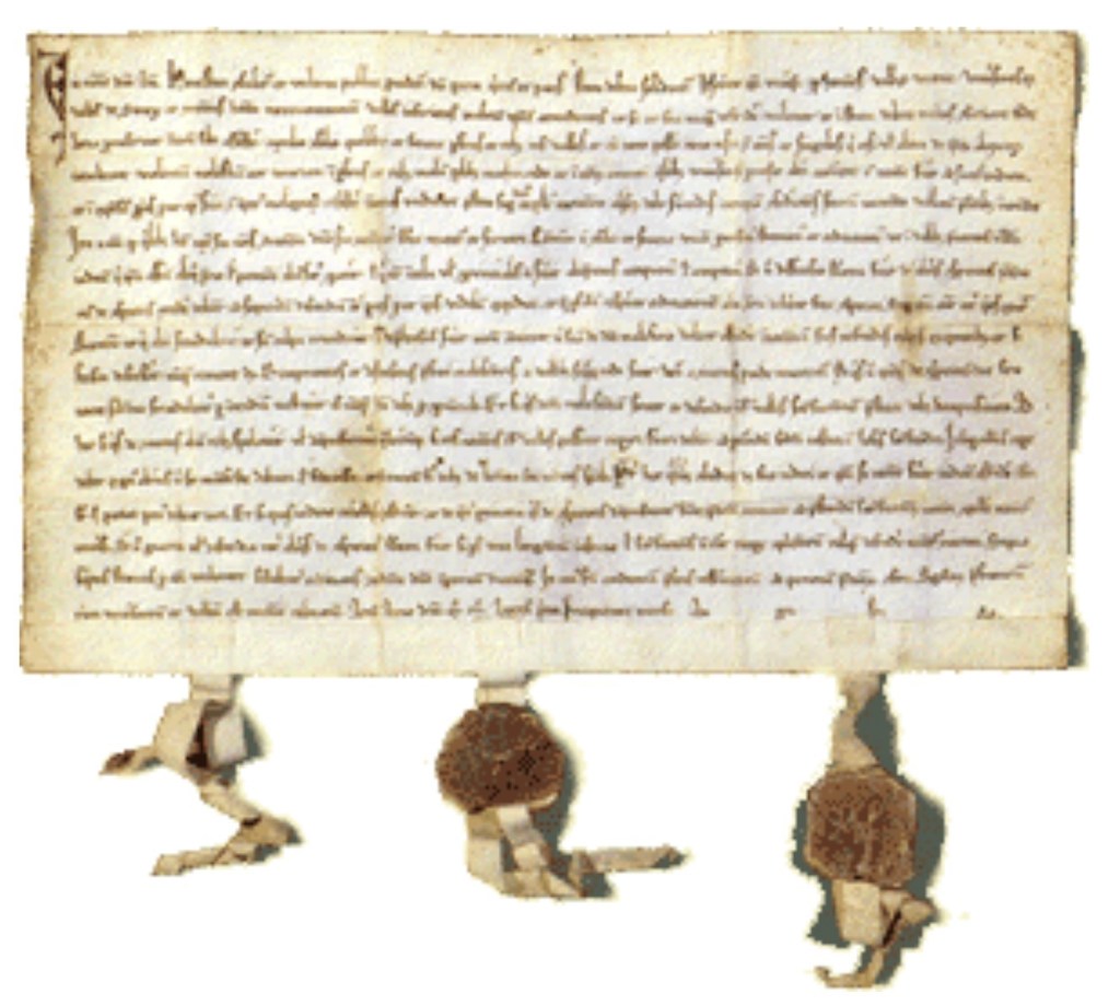 … Das öffentliche Ansehen und Wohl erfordert, dass Friedensordnungen dauernde Geltung gegeben werde. – Darum haben alle Leute … im Hinblick auf die Arglist der Zeit zu ihrem besseren Schutz und zu ihrer Erhaltung einander Beistand, Rat und Förderung mit Leib und Gut …. zugesagt gegen alle und jeden, die ihnen oder jemand aus ihnen Gewalt oder Unrecht an Leib oder Gut antun. – Und auf jeden Fall hat jede Gemeinde der andern Beistand auf eigene Kosten zur Abwehr und Vergeltung von böswilligem Angriff und Unrecht eidlich gelobt in Erneuerung des alten, eidlich bekräftigten Bundes, – jedoch in der Weise, dass jeder nach seinem Stand seinem Herren geziemend dienen soll. – Wir haben auch einhellig gelobt und festgesetzt, dass wir … durchaus keinen Richter, der das Amt irgendwie um Geld oder Geldeswert erworben hat oder nicht unser Einwohner oder Landmann ist, annehmen sollen.