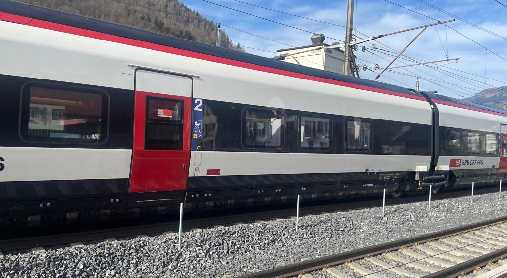 In Schwyz steigen wir aus bzw um. Hier begegnet uns ein Giruno, der beste internationale Zug (gebaut von der schweizerischen Stadler) der seit der Ära der Vierstrom TEE in der Schweiz verkehrt.