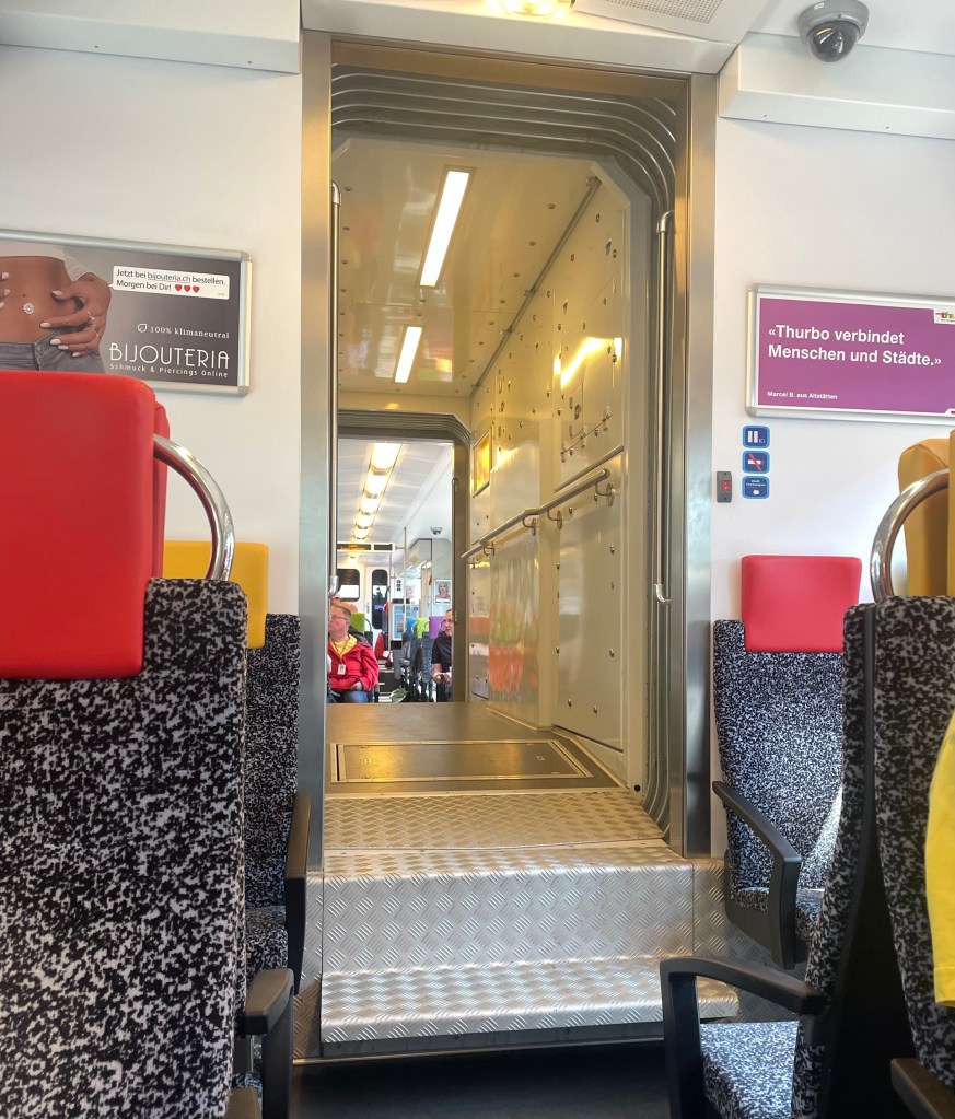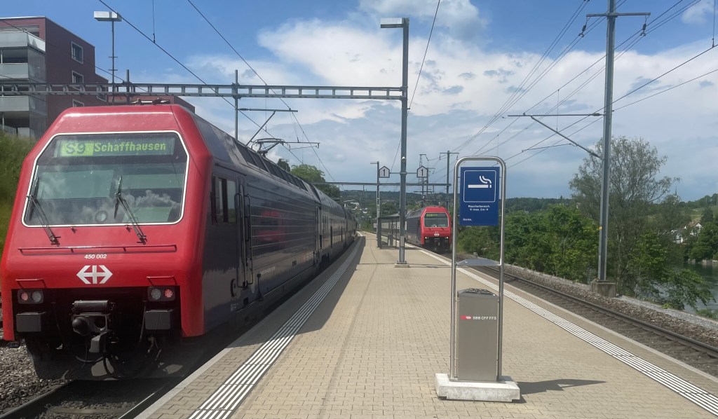 2. Umsteigen in Singen in eine Thurbo S-Bahn nach Schaffhausen, wo wir erneut umsteigen, in eine S-Bahn mit Fahrtziel Lottstetten.