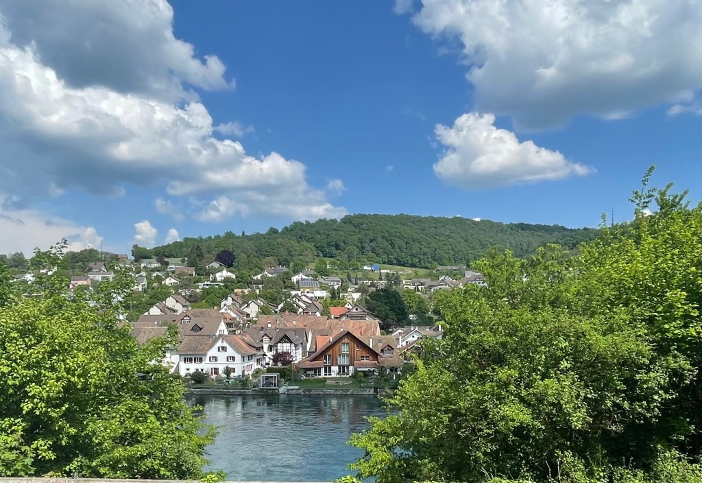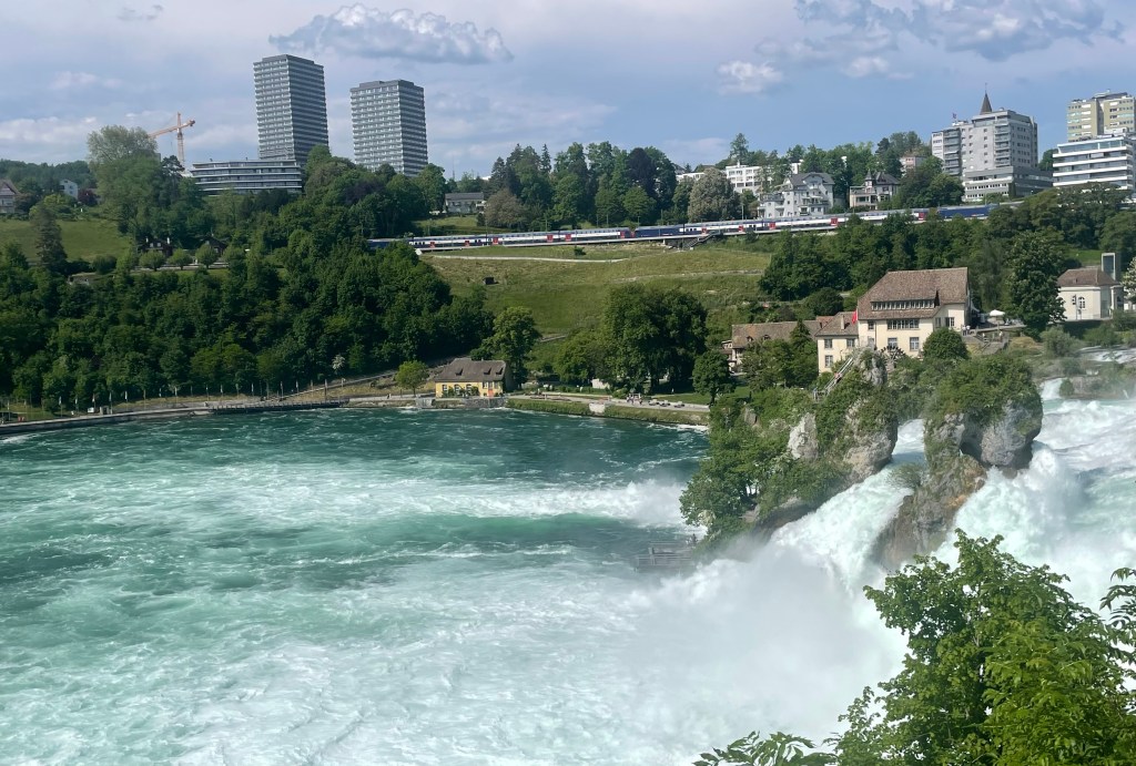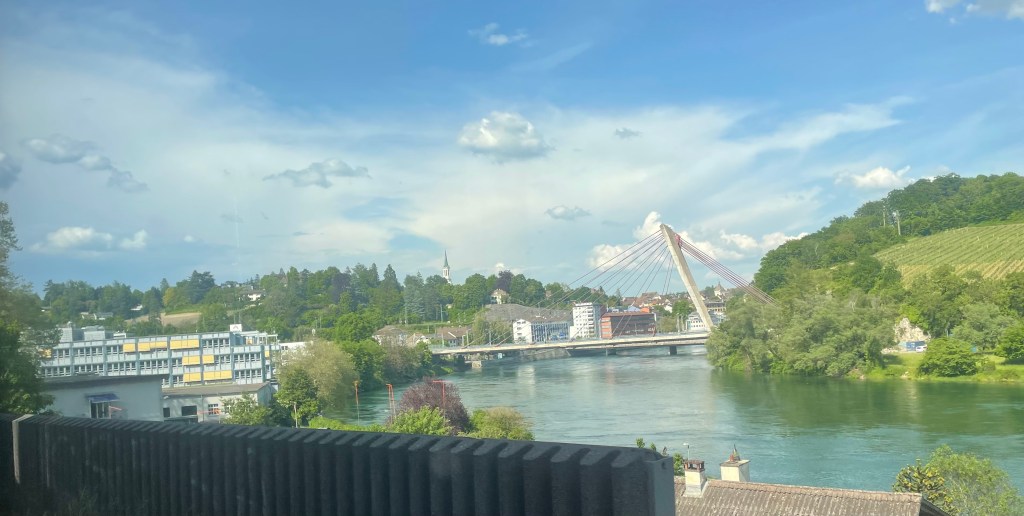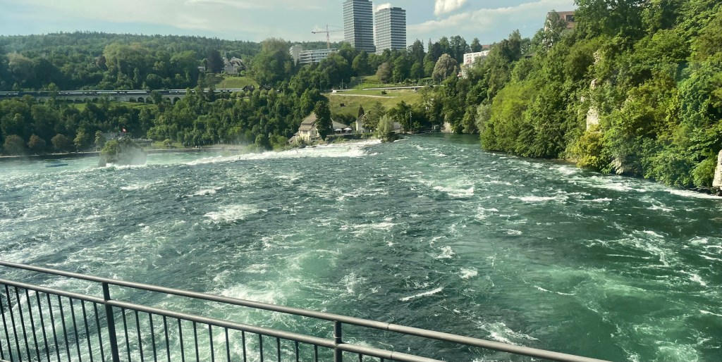 … über die Rheinbrücke (oberhalb des Rheinfalls)…