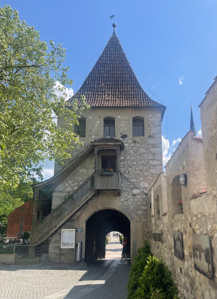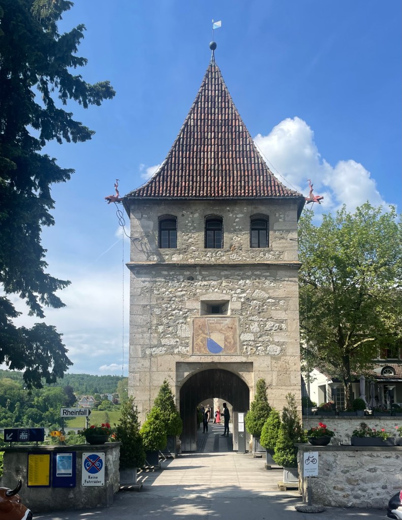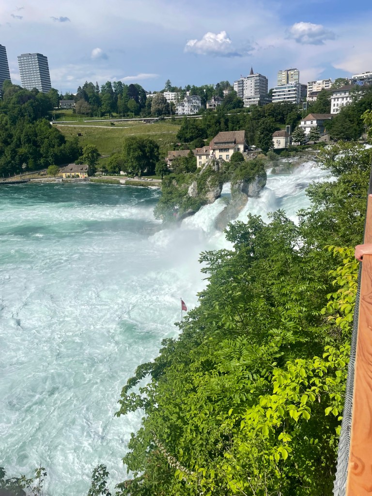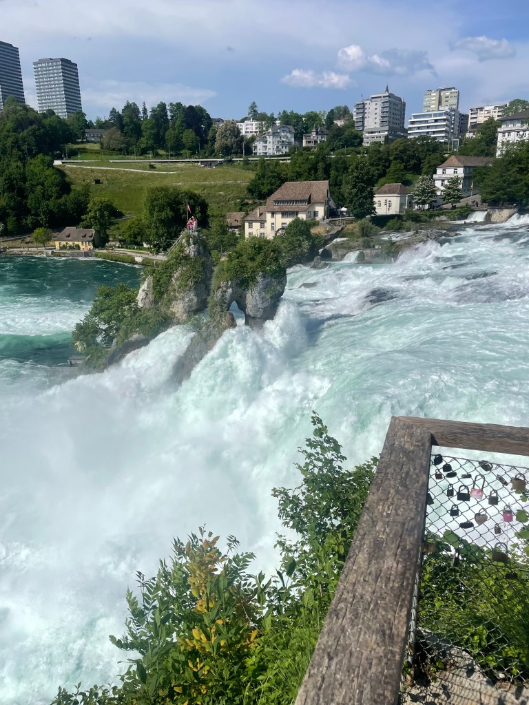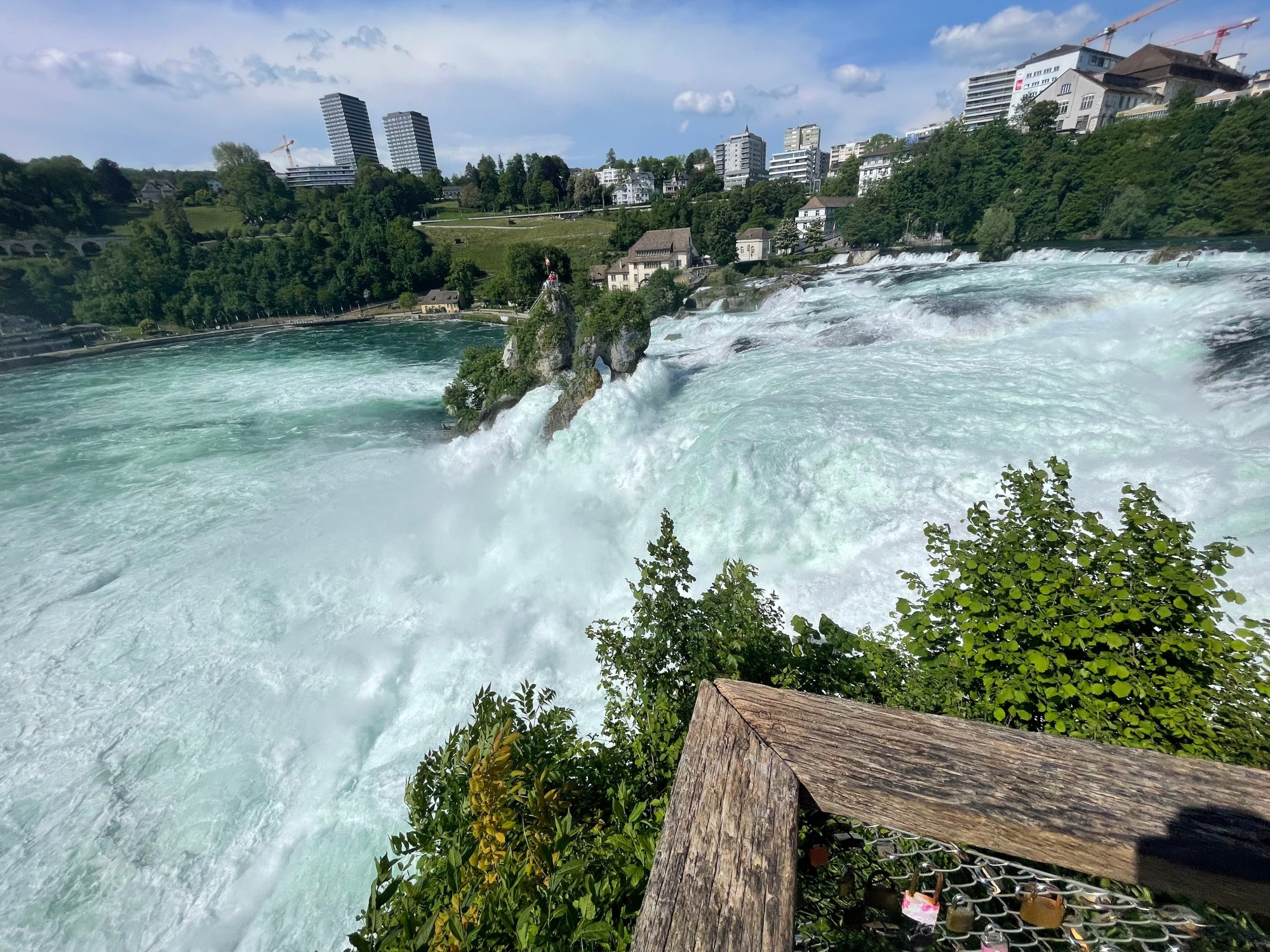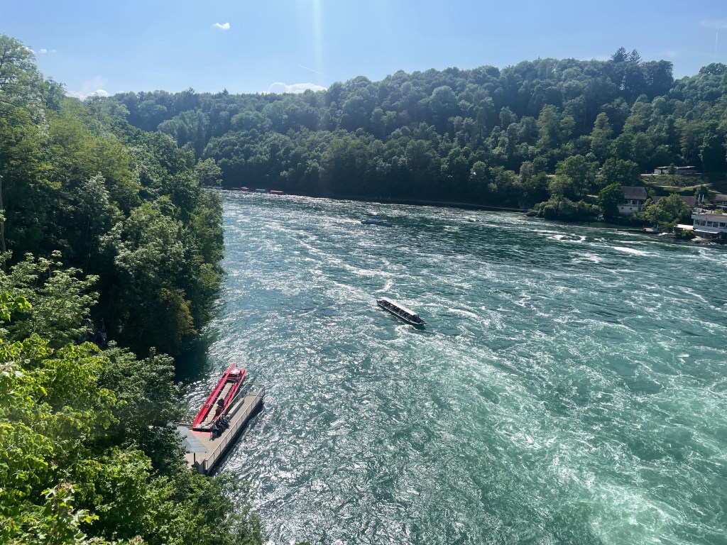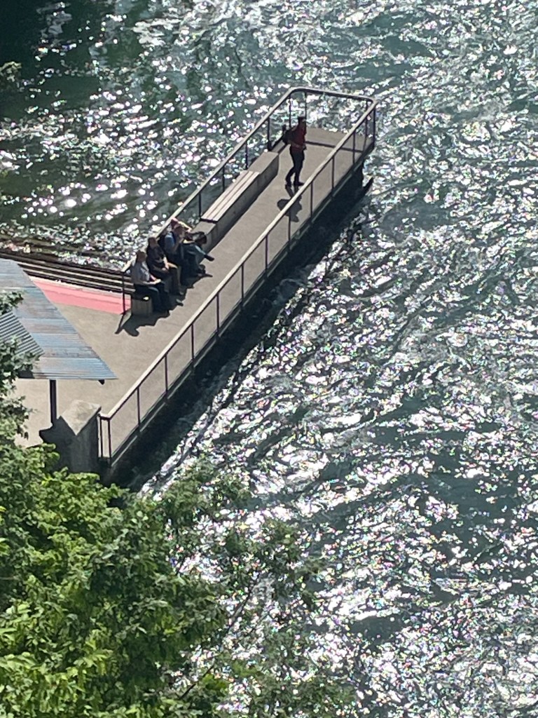 Nach ein paar Fotos gehe ich durch den Schlossgarten zurück zum Glaslift, fahre runter und spaziere bis zur oberen Rheinfall-Aussichtsplattform.