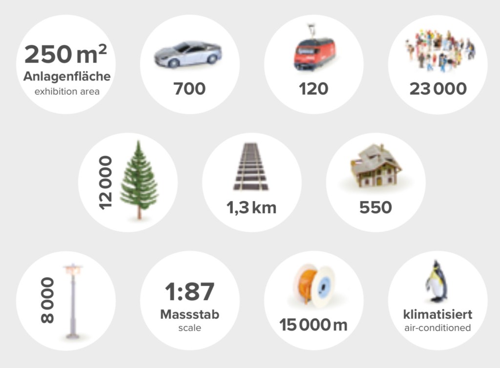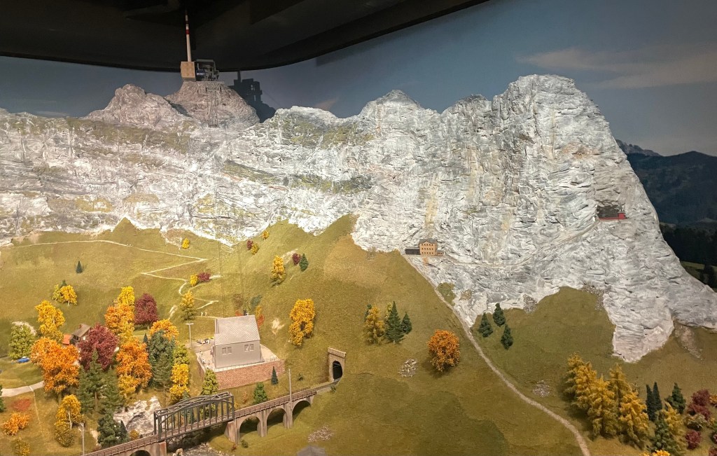 Die Darstellung des Lebens in der Schweiz ist, so glaube ich zu erkennen, das wichtigste Motiv für diese Anlage. Schöne grosse Wiesen mit Kühen und anderem Getier, Touristen-Hotspots wie Interlaken und Schaffhausen, Landsgemeinde, Schwingest, Schiessstand und andere Bräuche und Feste, das Berner Oberländische Dreigestirn aus Eiger, Mönch und Jungfrau, das in etwa 4 m hoch ist und das Dampfschiff Lötschberg auf dem Brienzersee.