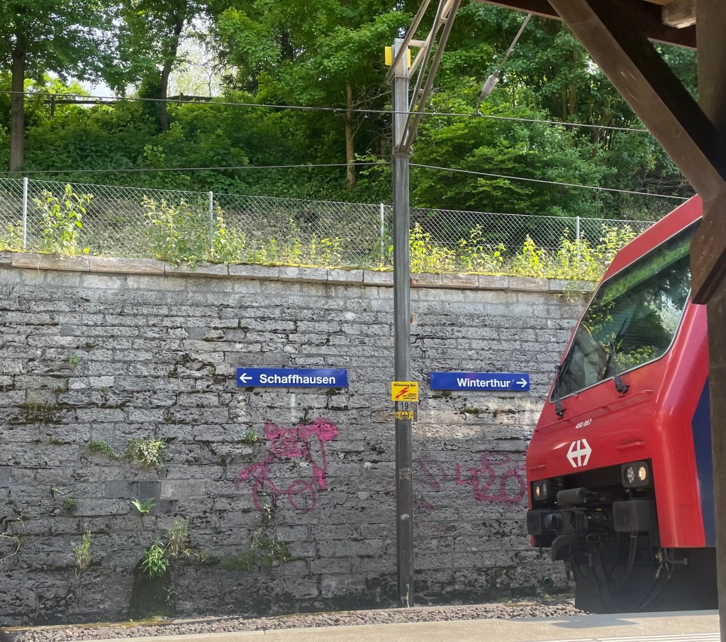 Anstatt dessen fahre ich mit der nächsten S-Bahn von der Haltestelle Schloss Laufen am Rheinfall …