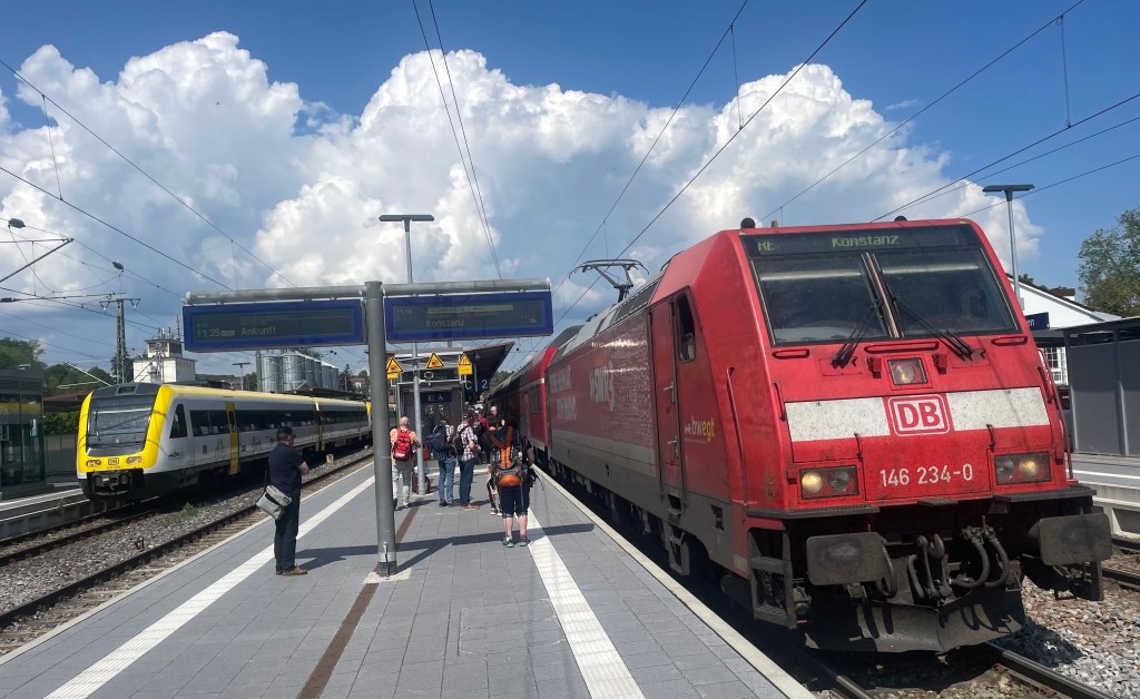 In Donaueschingen müssen wir am gleichen Bahnsteig umsteigen in einen von Offenburg her kommenden RE nach Konstanz.