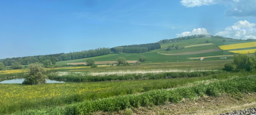Kurzweilige Weiterreise nach Singen. Habe die ganze Fahrt eine Diskussion mit einer Engländerin aus Leeds und einem Australier aus Canberra.
