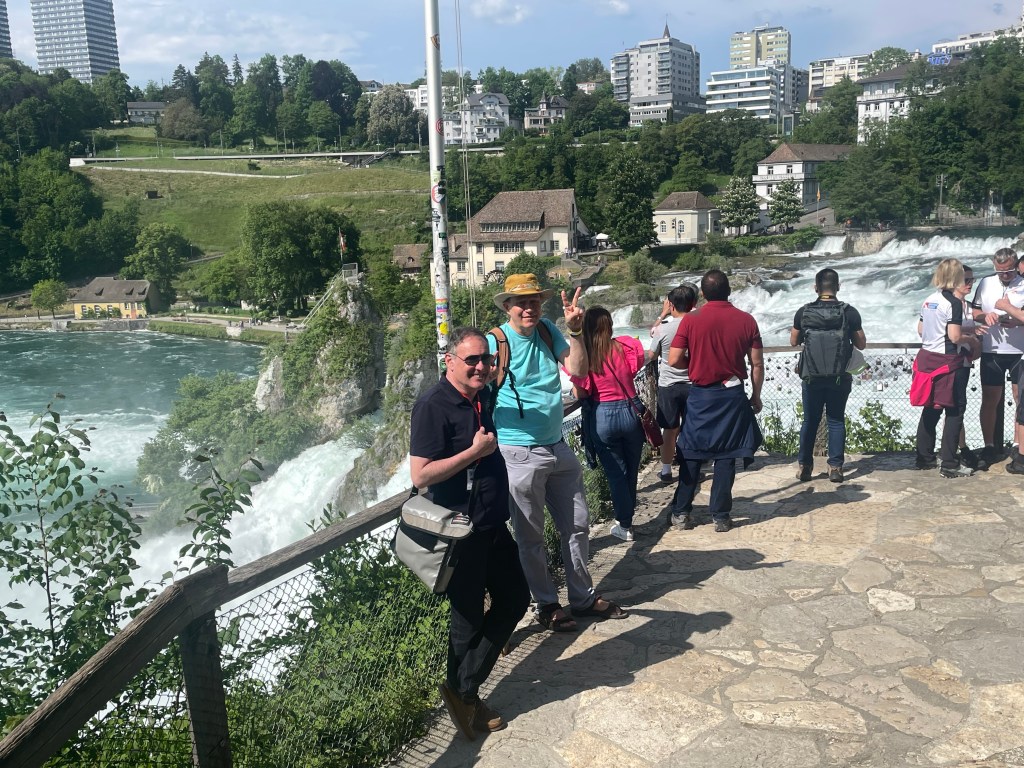 Nach 2 Stunden Besichtigung hat der letzte Eisenbahnfan genug gesehen. Der Hauptharst unseres Trupps wandert über die Eisenbahnbrücke zum Besucherzentrum des Rheinfalls.
