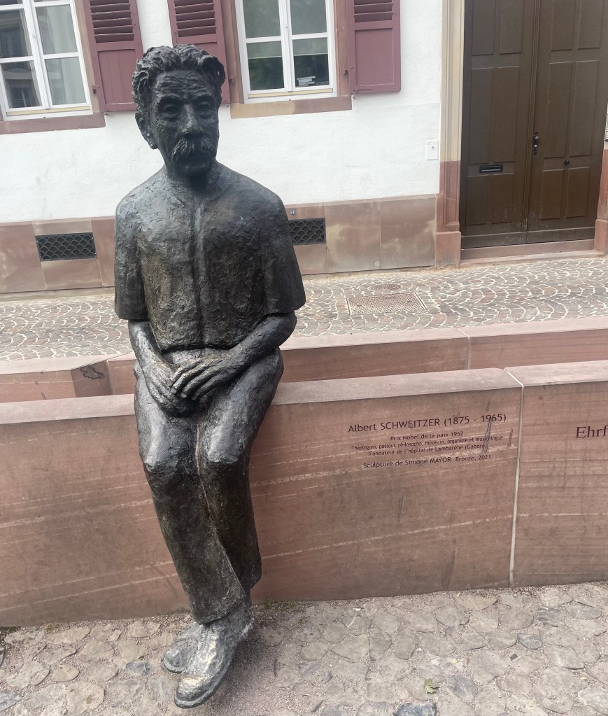 Hier befindet sich ein hiesiges Denkmal für den Urwaldarzt und Pfarrer Albert Schweitzer, einen grossartigen Mann! Ich erinnere mich immer noch bestens an 2 Besuche in unserem Pfarrhaus in Saanen in meiner Kindheit, kurz vor seinem Tod!