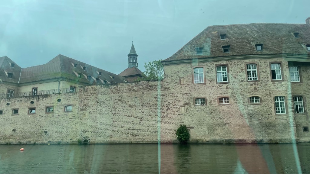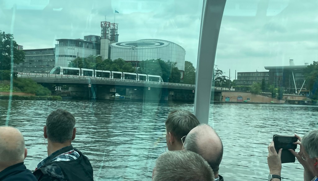 Endlich geht die Fahrt los. Die Erklärungen zu den Sehenswürdigkeiten erfolgen in 15 Sprachen, nicht aber meiner Sprache, auf Kopfhörer. Da die deutschen Kommentare so miserabel schlecht sind wechsle ich alsbald zum Strassburger Dialekt.