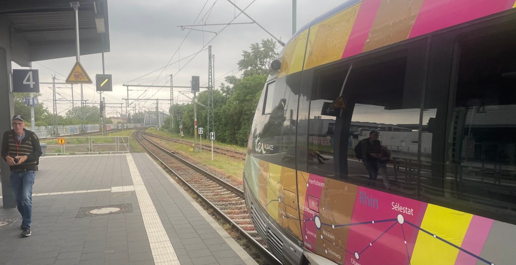 In Kehl müssen bzw dürfen wir den Wal bzw Walfisch verlassen. Furchtbare Züge, nur die Hälfte der Sitzplätze ist Fensternah. Ich kann mich nicht daran erinnern, dass es jemals genügend Sizplätze gab. Ich habe immerhin auch heute das Glück auf einem der 12 Klappsitze am Eingang nehmen zu dürfen.