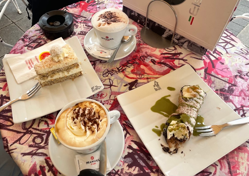 Anstatt sofort wieder zurück und nach Strassburg zu fahren, lassen Rolf und ich uns Zeit und kehren in ein italienisches Kaffeehaus im Fussgängerzentrum von Kehl ein und