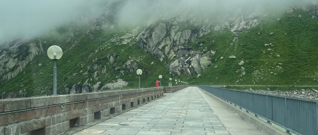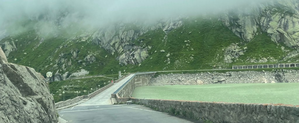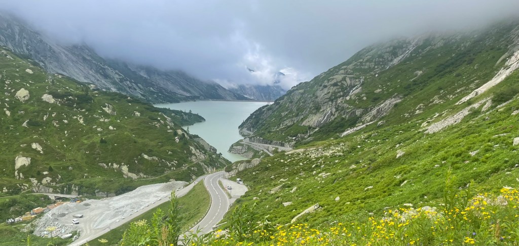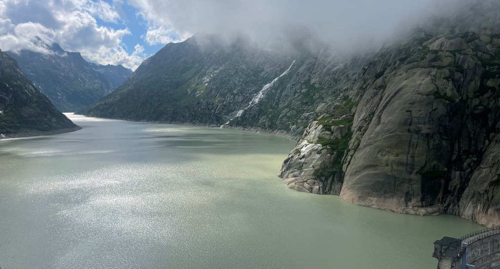 Also fahren wir mal über Meiringen – Innertkirchen – Urbachtal. Am Ende der befestigten Strasse im Urbachtal hängen die Wolken heute leider zu tief. Die Spitzen der Berge, die seitlich des Tals teils fast senkrecht bis zu 2‘000 Meter über den Talboden ragen, sind nicht sichtbar.