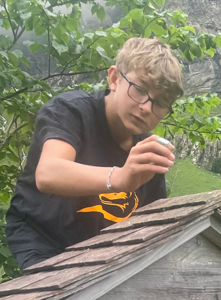 Dieses Jahr verbringt er erstmals eine Ferienwoche in meinem Garten zeltend, zusammen mit einem Freund Elia.
