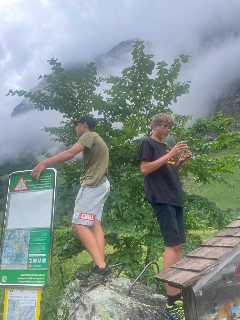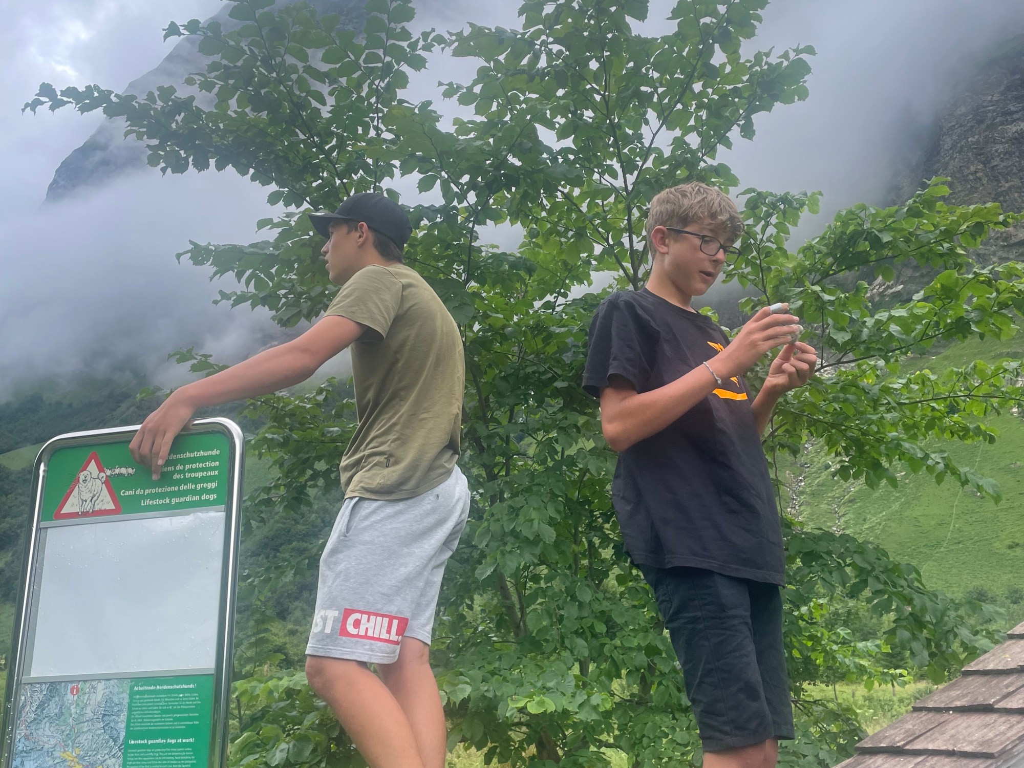 Was genau Jannic (rechts) hier bastelt und was Elia (links) beobachtet, erschliesst sich mir nicht!