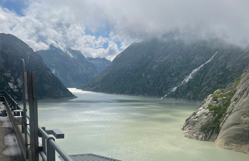 In der Ferne ist die Baustelle der neuen Grimselstaumauer zu sehen.