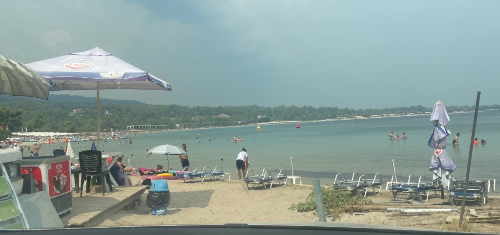 Nördlich davon befindet sich der Paliouristrand, vor 10 Jahren war diese Bucht ein Geheimtipp. Heute befinden sich hier etliche Hotels Und am Strand gibt es bis zu sieben Reihen fix montierter Strandschirme und -liegen, schrecklich.