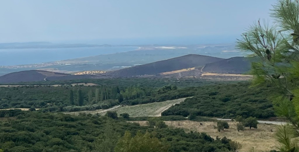 Schöner Ausblick ins fruchtbare Flachland und zur Meeresbucht zwischen Kassandra und Sithonia.