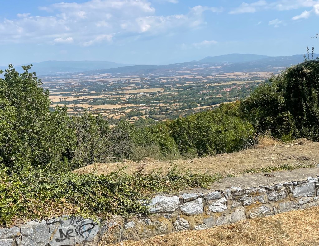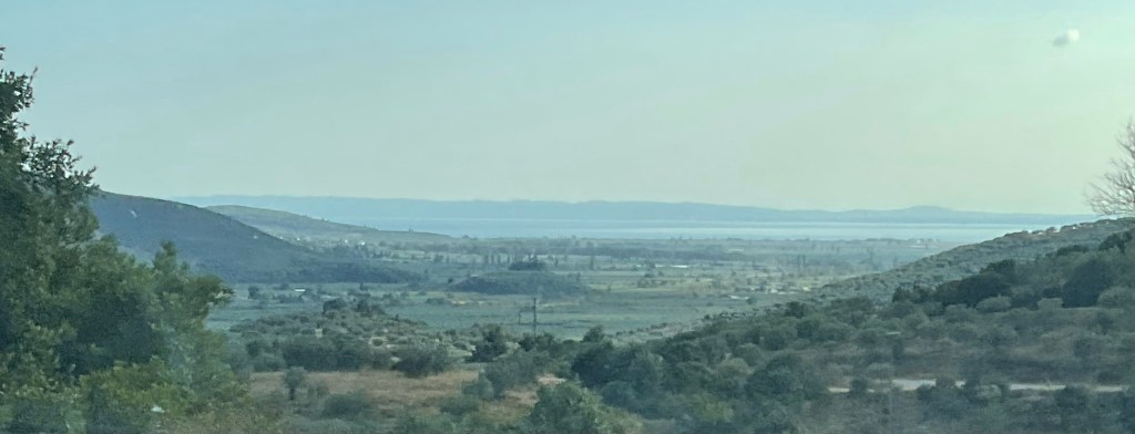 Hinter dem Cholomondas geht es über mehrere Stufen wieder runter in die nordgriechische Tiefebene, südlich des Limni Volvi Sees, ein interessantes Gewässer.