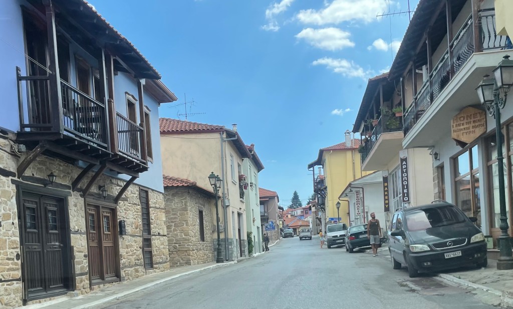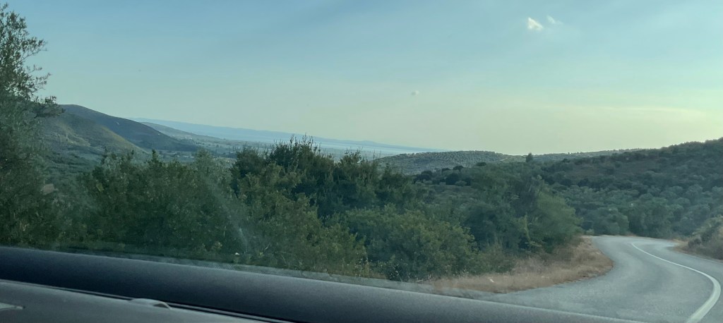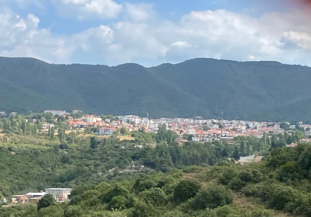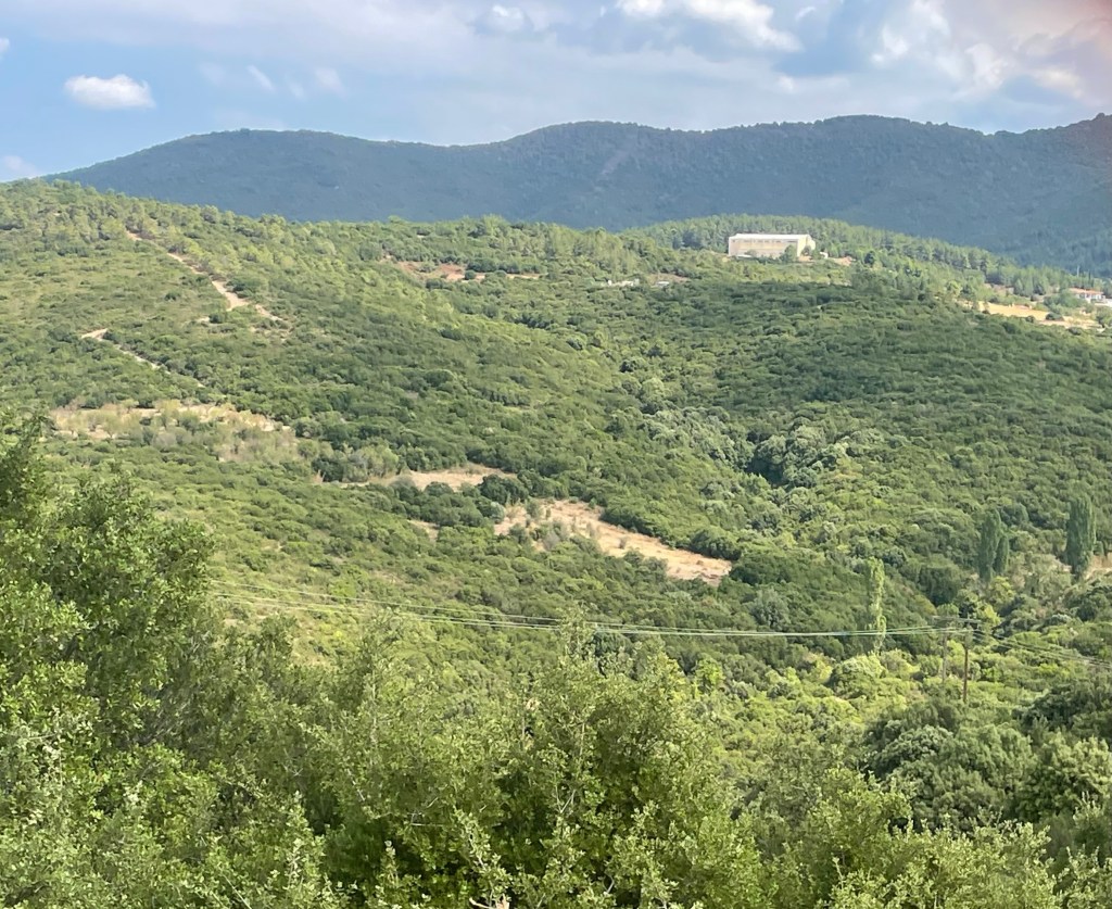 Hinter der Stadt erhebt sich der Cholomondas, ein bis auf 1165 Meter ansteigendes Gebirge. Wir werden das Gebirge allerdings erst auf der Heimfahrt von Arnea überqueren.