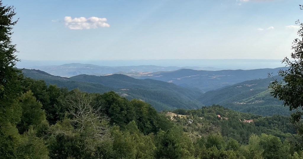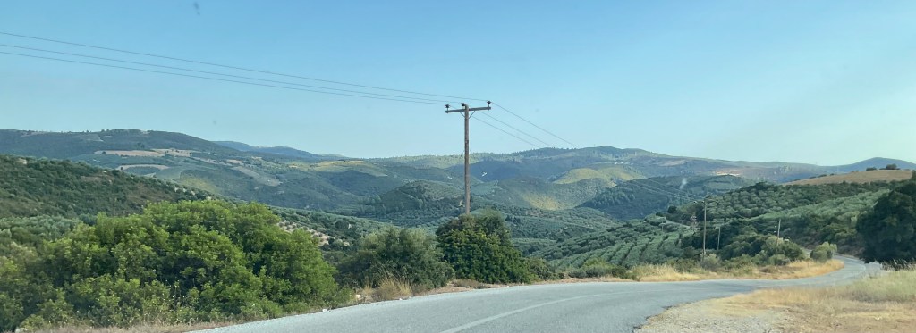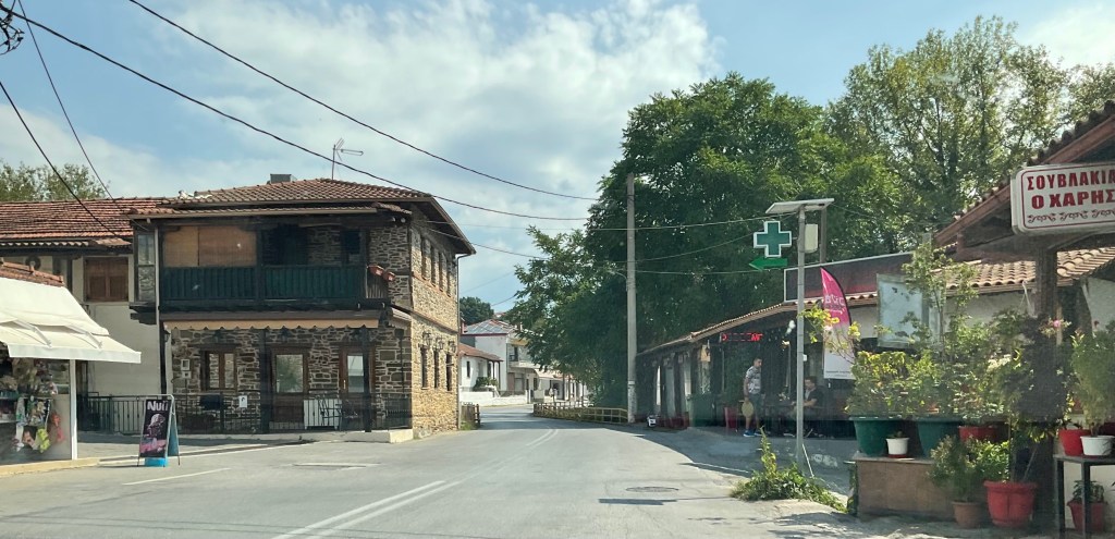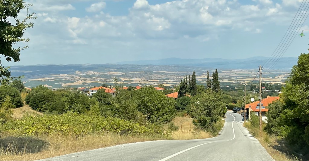 In Taxiarchis zweigen wir von der grossen Strasse, die in Richtung Polygyros führt, ab und fahren auf einer kurvenreichen Nebenstrasse direkt nach Süden.