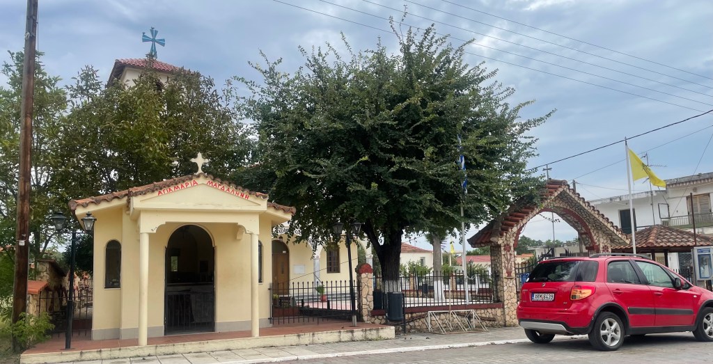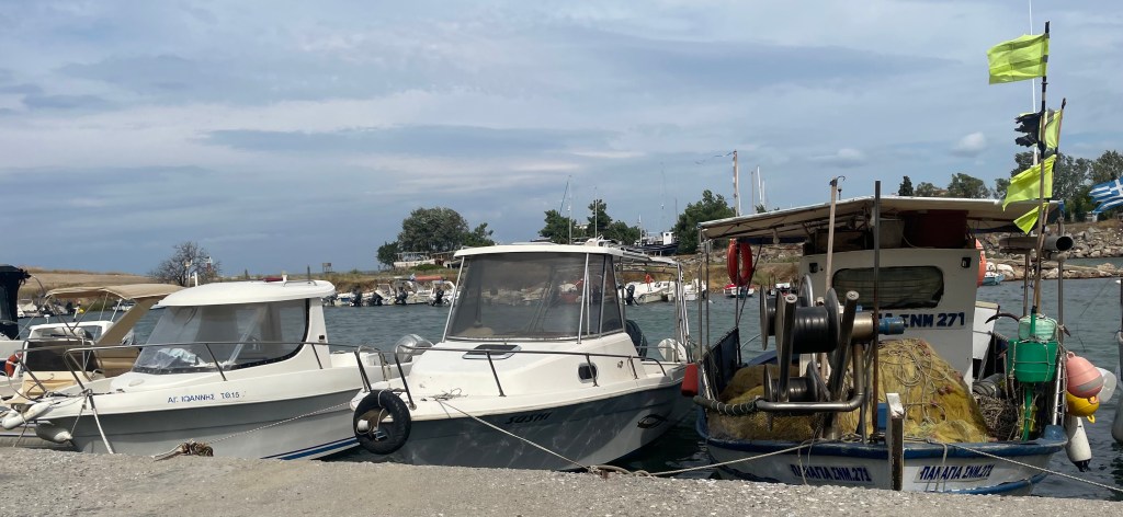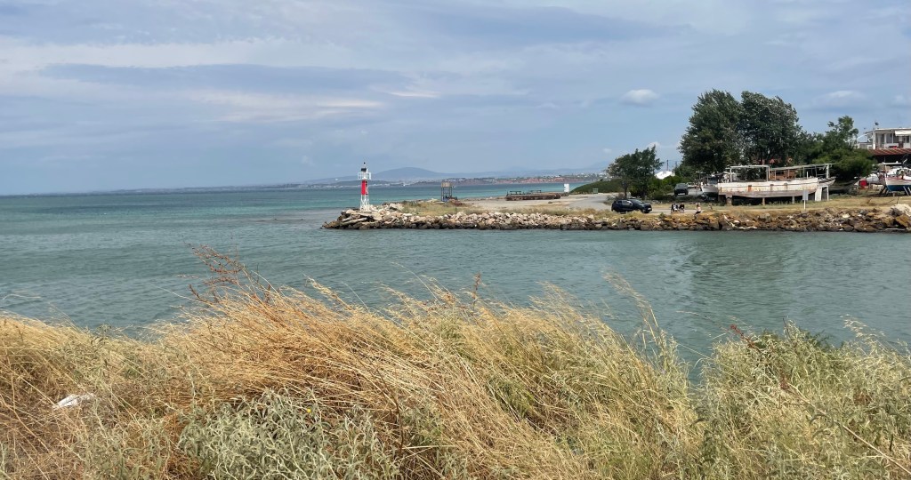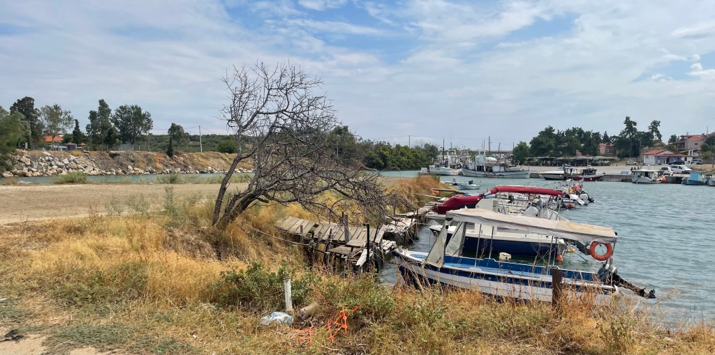 Kurz vor 13 Uhr, ich habe schon mächtig Hunger, wird klar, dass Yvonne und Michali ein anderes Tagesziel als Nea Potidea vor Augen haben: Nea Teneda, 20 Kilometer nördlich des Kanals, etwas nordöstlich von Nea Moudania.