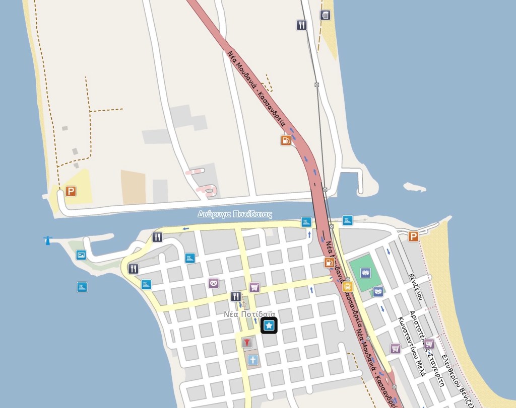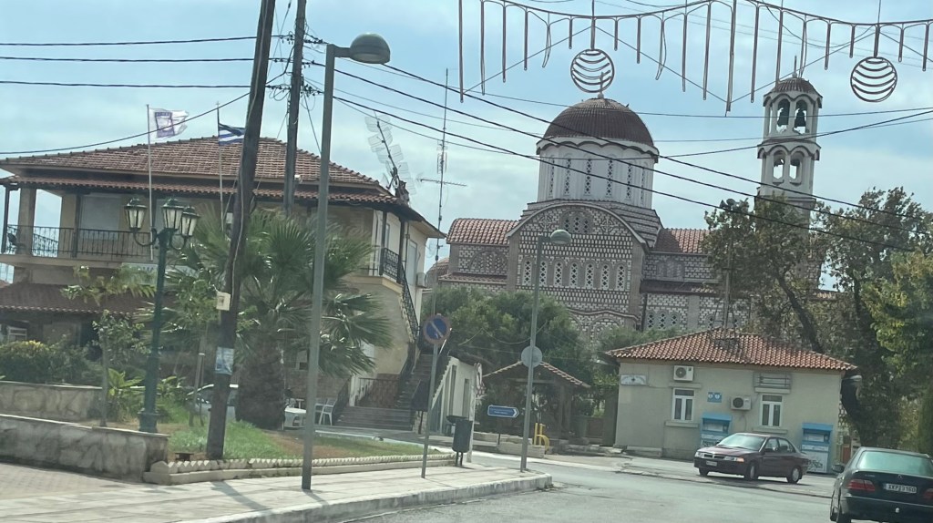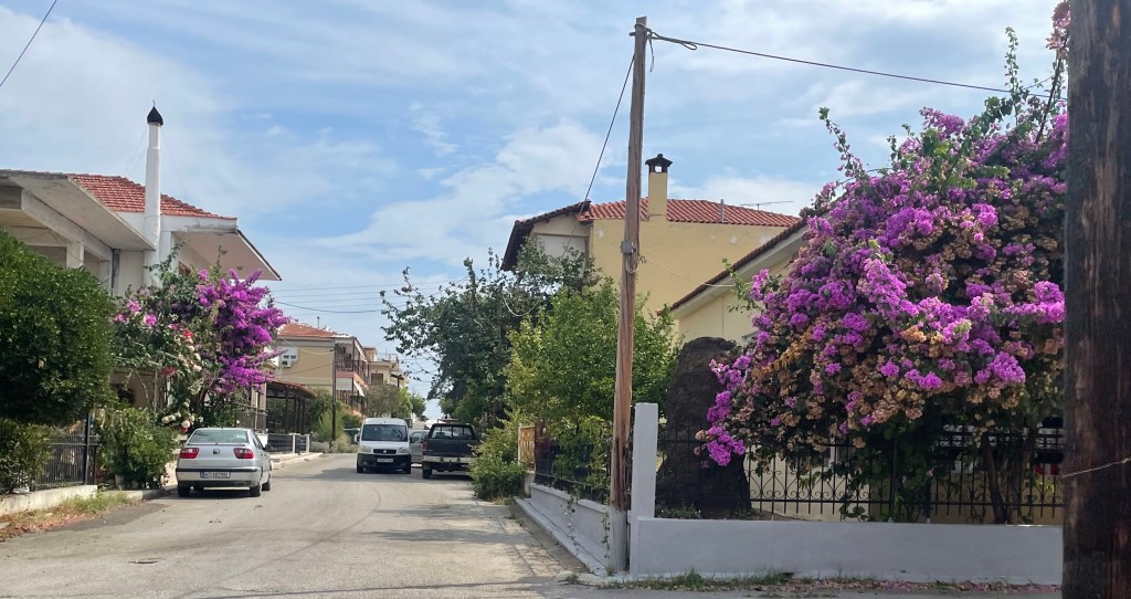 Der Ort wird quasi entzwei geschnitten durch die Schnellstrasse von Thessaloniki nach Kassandra.