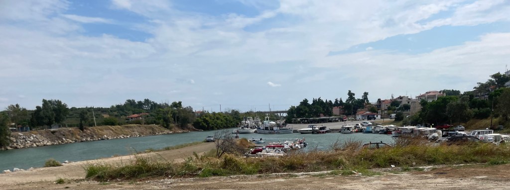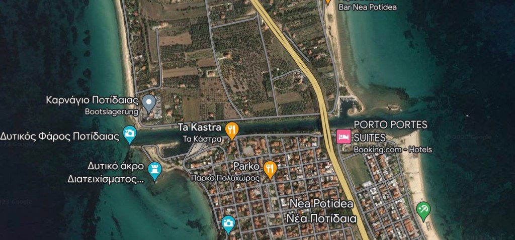 Heute nun wagen wir es erstmals wieder einen kleinen Ausflug zu unternehmen. Das Ziel heisst Nea Potidea, das nördlichste Dorf Kassandras. Unmittelbar nördlich davon führt der Kanal von Nea Potidea durch.