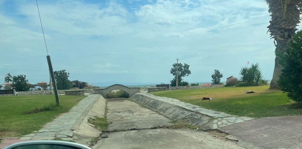 Auf der Ostseite der Schnellstrasse befindet sich der neue Teil von Nea Potidea mit grösstenteils langsam verfallenden Touristenblöcken und Strandanlagen.