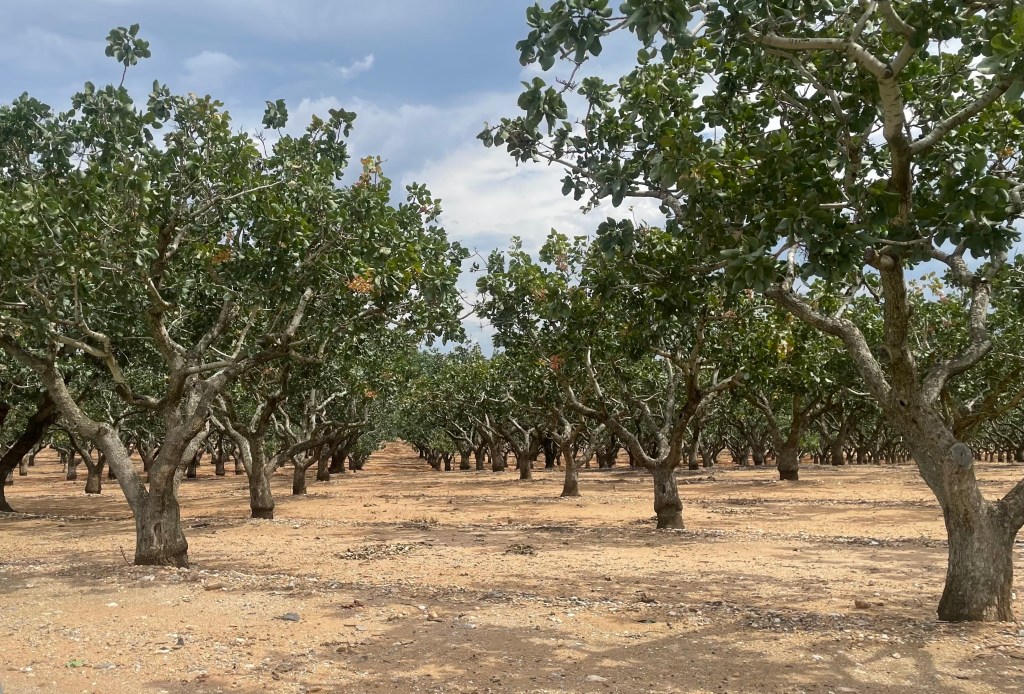 Bald schon verlassen wir jedoch die grosse Strasse und fahren auf kleinen Strassen übers Land. Bald sind links und rechts der Strasse nebst Olivenbäumen etliche Pistazien – Plantagen auszumachen.