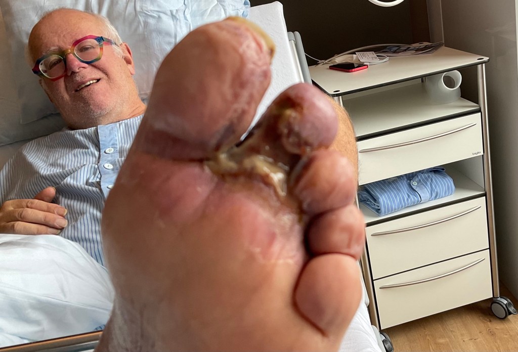 Am Montag, 11.03.2024 konkretisiert sich das weitere Vorgehen immer klarer. Am Mittwoch sollen unter Teil- oder Vollnarkose alle Wunden an Schienbeinen, Füssen und Zehen komplett gesäubert und ausgekratzt und anschliessend mittels „Vakuumverband“ therapiert werden. Ein paar Tage später soll ein erster Verbandswechsel, auch hier im Spital, im OP stattfinden. Also werde ich noch mindestens eine Woche hier in Unterseen bleiben müssen.