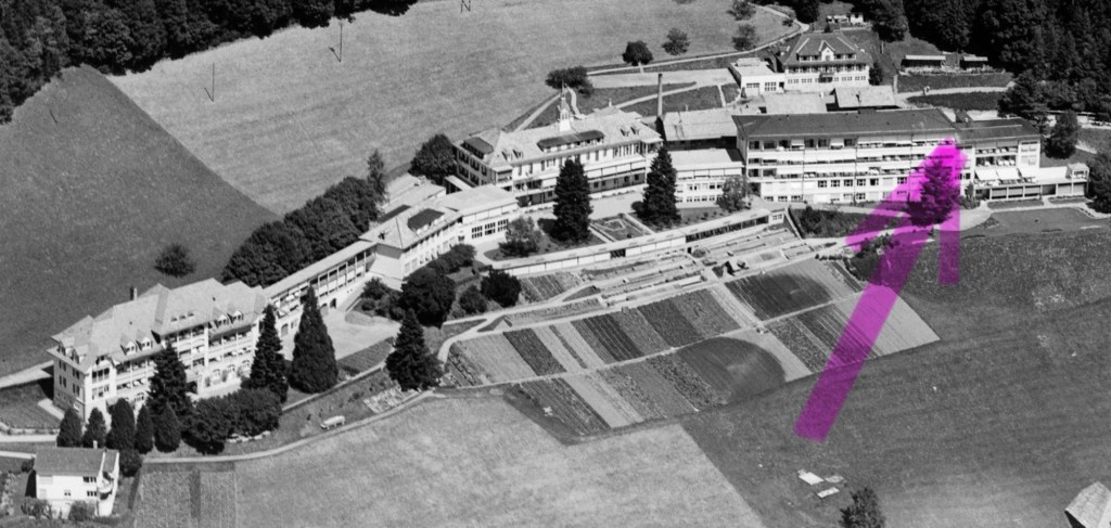 Das älteste Haus der Höhenklinik ist eingerahmt von zwei Mammutbäumen. Ob diese von Missionaren oder Apothekern (so wie die meisten Mammutbäume in Basel) gepflanzt worden sind, entzieht sich meiner Kenntnis kann mir auch niemand der leitenden Personen hier oben sagen.