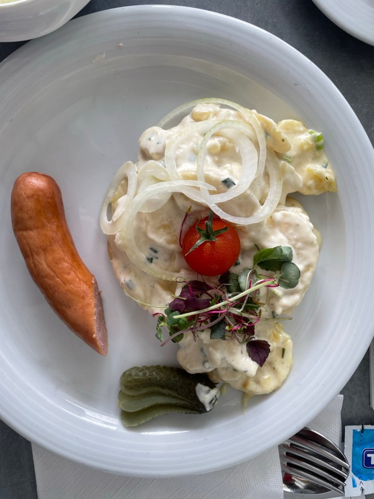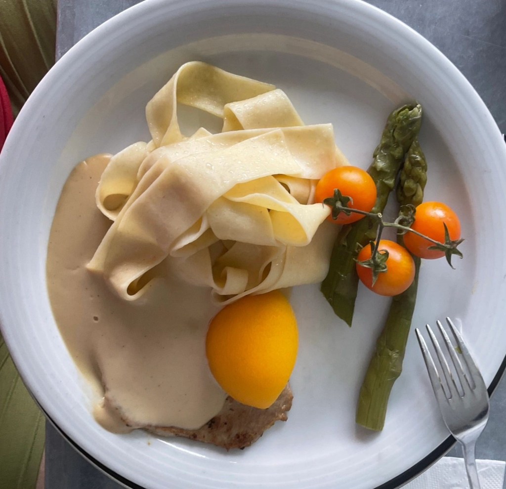 Da ich mich nicht im Zaun halten kann, und immer zu viel esse und den Teller leere, habe ich mir während ein paar Tagen nur halbe Portionen bestellt. Das sieht aber mickrig aus!