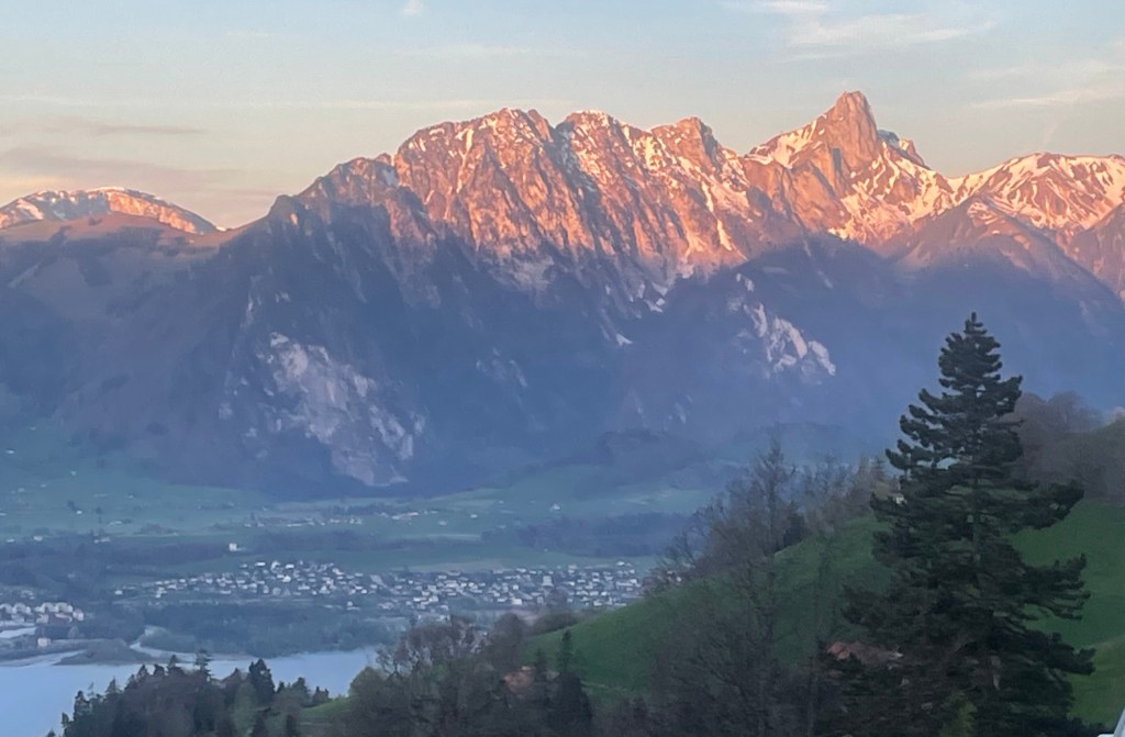 Letzter Sonnenaufgang und Morgen in der Rehaklinik. Nach nur 13 Tagen und Nächten muss ich jetzt schon wieder heim, obwohl die Wunden nicht so weit wie versprochen, verschwunden und geheilt sind.